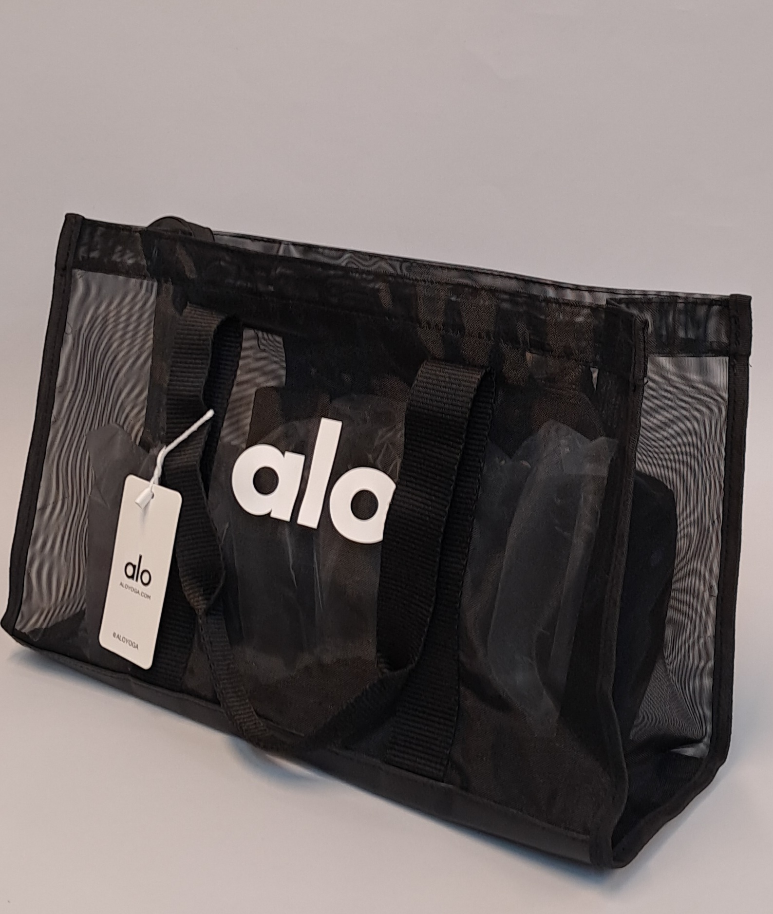 کیف سبدی شیک و خاص از برند alo طرح توری جدید و خوش استایل مناسب برای هر استفاده جا دار و با متریال عالی